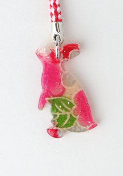 縁起のいい動物たちをかたどった、ちりめん柄の根付…