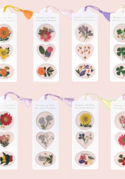 色とりどりの押し花が入った可愛いブックマークステ…
